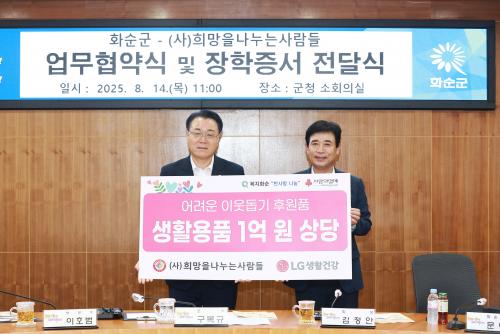 À̳¯ Çù¾à½Ä¿¡¼­´Â ÀåÇлýÀ¸·Î ¼±Á¤µÈ 15¸íÀÇ Çлý°ú Çкθ𰡠ÇÔ²² Âü¼®ÇÑ °¡¿îµ¥, ¸Å¿ù °¢ 5¸¸ ¿ø¾¿ 2³â°£ Áö¿øµÇ´Â ÀåÇÐ±Ý 1,800¸¸ ¿ø°ú 3¸í¿¡°Ô 360¸¸ ¿ø »ó´çÀÇ ÄÄÇ»Å͸¦ Àü´ÞÇß´Ù. ¶ÇÇÑ °ü³» Àú¼ÒµæÃþ ÁÖ¹ÎÀ» À§ÇØ 2¾ï ¿ø »ó´çÀÇ ÈÄ¿ø ¹°Ç°À» Áö¿øÇÒ ¿¹Á¤ÀÌ´Ù.