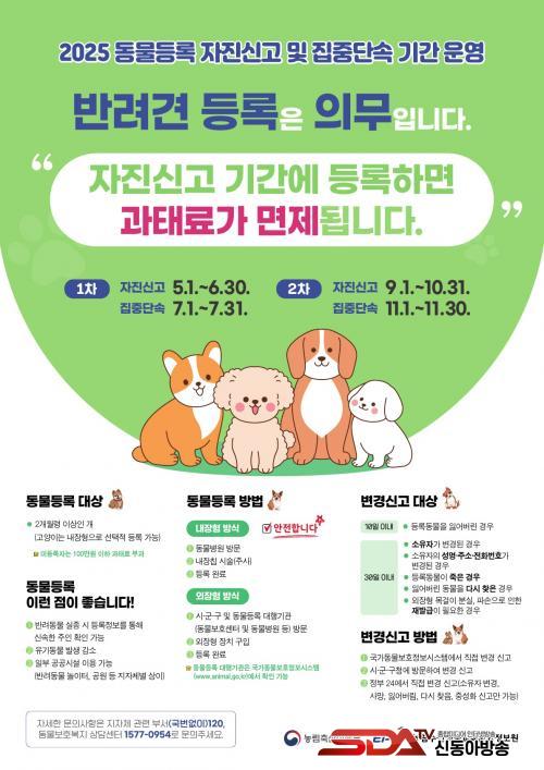 ±¸´Â ÀÚ¹ßÀûÀÎ µî·ÏÀ» À¯µµÇϱâ À§ÇØ ¿À´Â 9¿ù 1ÀϺÎÅÍ 10¿ù 31ÀϱîÁö ÀÚÁø½Å°í ±â°£À» ¿î¿µÇϸç, ÀÌ ±â°£ ½Å±Ô µî·ÏÀ̳ª º¯°æ ½Å°í¸¦ ÇÏ¸é °úÅ·ᰡ ¸éÁ¦µÈ´Ù. À̾î 11¿ù 1ÀϺÎÅÍ 30ÀϱîÁö´Â ÁýÁß´Ü¼Ó ±â°£À¸·Î, ÀÌ ±â°£¿¡ Àû¹ßµÉ °æ¿ì µ¿¹° ¹Ìµî·ÏÀº ÃÖ´ë 60¸¸ ¿ø, º¯°æ½Å°í ¹ÌÀÌÇàÀº ÃÖ´ë 40¸¸ ¿øÀÇ °úÅ·ᰡ ºÎ°úµÈ´Ù.