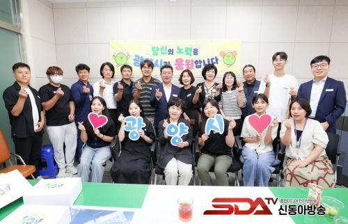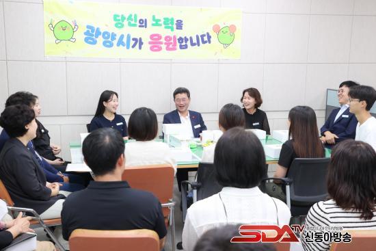 ¡®±¤¾ç½Ã°¡ ÀÀ¿øÇÕ´Ï´Ù¡¯´Â ±¤¾ç½ÃÀåÀÌ ¸Å¿ù ÇÑ ºÎ¼¸¦ ã¾Æ Á÷¿øµéÀÇ ¾Ö·Î»çÇ×À» ûÃëÇϰí, ÀÚÀ¯·Ó°Ô ÀǰßÀ» ³ª´©´Â Á÷¿ø ¼ÒÅë Çà»ç´Ù. À̹ø¿¡ ¹æ¹®ÇÑ °ø¿ø°ú´Â Ư»ö ÀÖ´Â ¸íǰ °ø¿ø Á¶¼º, ģȯ°æ ³ì»ö°ø°£ È®´ë, ½Ã¹Î Ä£ÈÀû °ø¿ø¹®È È®»ê, ¿©¸§Ã¶ ¹°³îÀÌÅÍ ¿î¿µ µîÀ» ÅëÇØ ½Ã¹Î °Ç° ÁõÁø°ú »îÀÇ Áú Çâ»ó¿¡ ±â¿©Çϰí ÀÖ´Â ºÎ¼´Ù. Á¤ ½ÃÀåÀº ¡®Áö¼Ó °¡´ÉÇÑ ³ì»ö µµ½Ã ±¤¾ç¡¯À» À§ÇØ Èû¾²´Â Á÷¿øµéÀ» °Ý·ÁÇÏ¸ç °£½ÄÀ» Àü´ÞÇß´Ù.