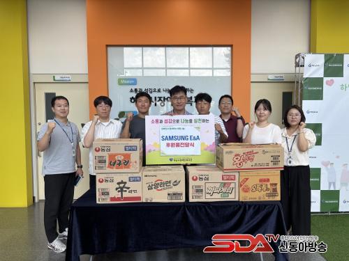 À̳¯ »ï¼º E&A ÀÓÁ÷¿øµéÀº º¹Áö°ü ½Ä´ç¿¡¼ Àå¾ÖÀΰú Áö¿ªÁֹε鿡°Ô Á¡½ÉÀ» Á¦°øÇÏ´Â ¹è½Ä ºÀ»ç Ȱµ¿À» Á÷Á¢ ÁøÇàÇÏ¸ç µû¶æÇÑ ³ª´®À» ½ÇõÇß´Ù. ´õºÒ¾î ¾à 20¸¸¿ø »ó´çÀÇ ½Ä·áǰÀ» ÈÄ¿øÇØ °æÁ¦Àû ¾î·Á¿òÀ» °Þ´Â Àú¼Òµæ Àå¾ÖÀÎ °¡Á¤¿¡ Àü´ÞµÉ ¼ö ÀÖµµ·Ï Áö¿øÇß´Ù.