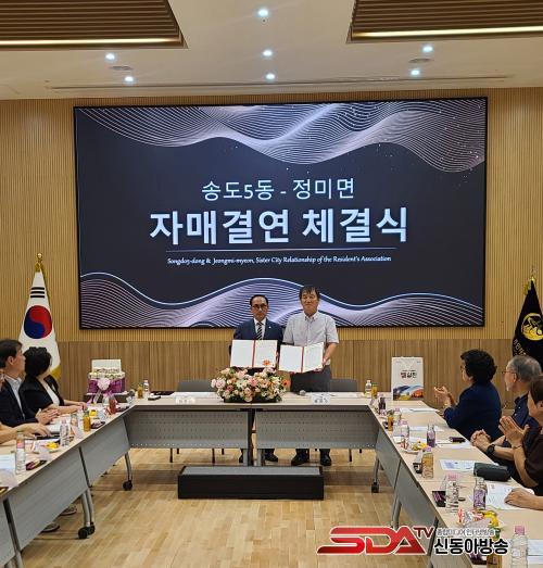 3ÀÏ ¿ÀÈÄ ¼Ûµµ5µ¿ ÇàÁ¤º¹Áö¼¾ÅÍ È¸Àǽǿ¡¼ ¿¸° À̹ø Çù¾à½Ä¿¡´Â Á¤¹Ì¸é ¹Ú¸í¼ö ¸éÀå°ú Á¤¹Ì¸é ÁÖ¹ÎÀÚġȸ ÇöÁø¼ö ȸÀå, ¼Ûµµ5µ¿ °ÁöÇà µ¿Àå, ¼Ûµµ5µ¿ ÁÖ¹ÎÀÚġȸ äÇÑÁø ȸÀåÀ» ºñ·ÔÇÑ ÁÖ¹ÎÀÚġȸ À§¿øµéÀÌ Âü¼®Çß´Ù.