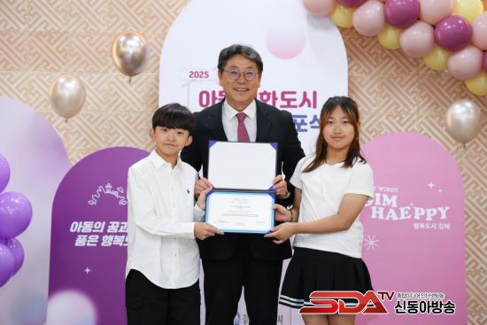 [½Åµ¿¾Æ¹æ¼Û °æ³²±èÇØ=³²±Ã¿µ±â±âÀÚ] ±èÇØ½Ã´Â 9ÀÏ ¿ÀÀü 10½Ã 30ºÐ ½Ãû ´ëȸÀǽǿ¡¼­ À¯´Ï¼¼ÇÁ ¾Æµ¿Ä£È­µµ½Ã(UNICEF Child Friendly Cities) »óÀ§ÀÎÁõ ¼±Æ÷½ÄÀ» °®°í ¾Æµ¿Ä£È­ ¼±µµµµ½Ã·Î¼­ ÇÑ ´Ü°è ´õ µµ¾àÇßÀ½À» ´ë³»¿Ü¿¡ ¾Ë·È´Ù.