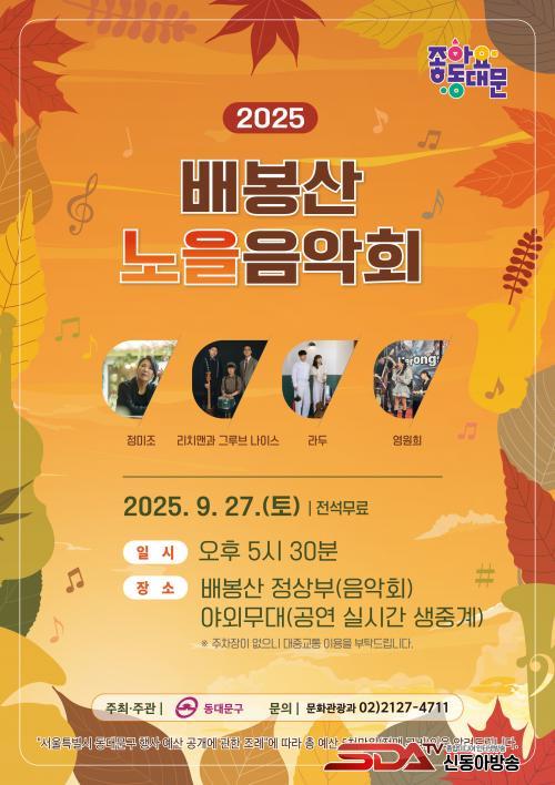 [½Åµ¿¾Æ¹æ¼Û µ¿´ë¹®±¸=À̽ŵ¿±âÀÚ] ¼­¿ï µ¿´ë¹®±¸´Â ¿À´Â 27ÀÏ ¡®2025 ¹èºÀ»ê ³ëÀ»À½¾Çȸ¡¯¸¦ °³ÃÖÇÑ´Ù°í ¹àÇû´Ù. ¿ÃÇØ ù¼±À» º¸ÀÌ´Â À̹ø À½¾Çȸ´Â µ¿´ë¹®±¸ÀÇ ´ëÇ¥ ¸í¼ÒÀÎ ¹èºÀ»ê Á¤»ó¿¡¼­ ¿­¸°´Ù. Àú¹«´Â ³ëÀ»°ú ÇÔ²² ÀçÁî¿Í º¸»ç³ë¹ÙÀÇ ¾Æ¸§´Ù¿î ¼±À²À» Áñ±æ ¼ö ÀÖ´Â ¾ß¿Ü°ø¿¬À¸·Î, °ü°´µé¿¡°Ô ÇÑÃþ ´õ ±í°í °¨¼ºÀûÀÎ °¡À» Àú³áÀ» ¼±»çÇÒ ¿¹Á¤ÀÌ´Ù.
