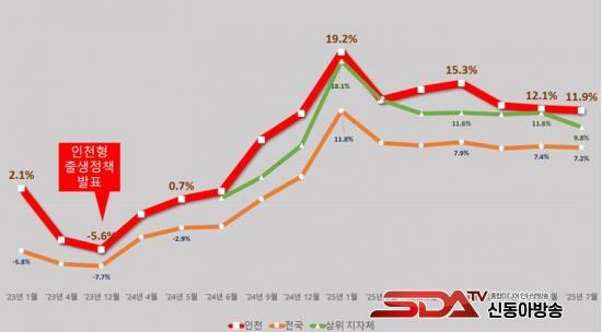 - Ãâ»ý¾Æ ¼ö Áõ°¡À² ±×·¡ÇÁ(2025³â 7¿ù Åë°èÀÚ·á ±âÁØ)