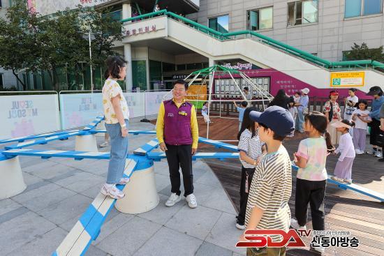 ÀÌÇÊÇü µ¿´ë¹®±¸Ã»ÀåÀÌ ±¸Ã» ±¤Àå¿¡ ¼³Ä¡µÈ ¡®¿©±âÀú±â ¼­¿ïÇü ŰÁîÄ«Æä¡¯¿¡¼­ ¾ÆÀ̵éÀÌ ³ë´Â ¸ð½ÀÀ» »ìÆìº¸°í ÀÖ´Ù.
