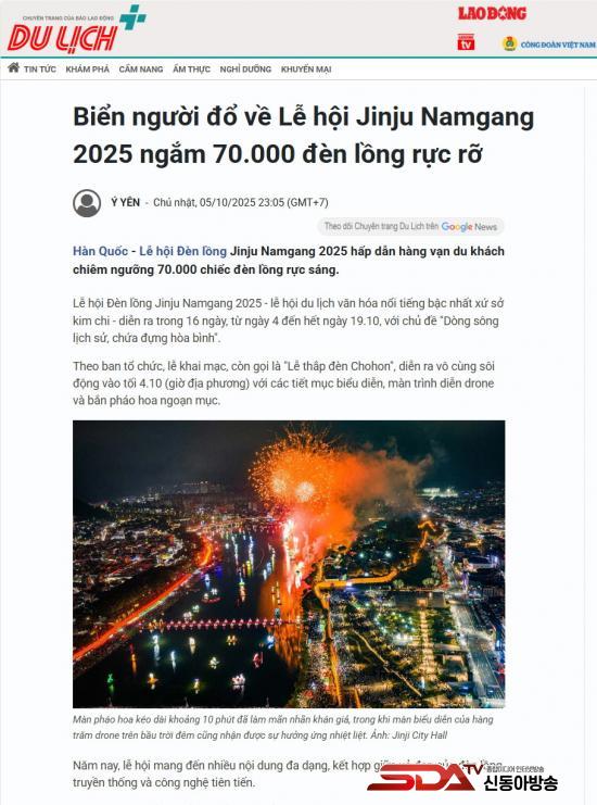 Áö³ 10¿ù 5ÀÏ, º£Æ®³² ÁÖ¿ä ¹æ¼Û»çÀΠȣÂî¹Î½ÃƼÅÚ·¹ºñÀü(Ho Chi Minh City Television, HTV)¿¡¼µµ ÃàÁ¦ ¼Ò½ÄÀ» º¸µµÇßÀ¸¸ç, º£Æ®³² ±¹¿µ¹æ¼Û º¸À̽º ¿Àºê º£Æ®³²(VOV)°ú À¯·Â Àϰ£Áö ¶ó¿Àµ¿(Lao Động)Àº °¢°¢ ¡¸7¸¸ °³ ÀÌ»óÀÇ µîºÒÀÌ ¹àÈ÷´Â 2025 ÁøÁÖ³²°À¯µîÃàÁ¦¡¹, ¡¸7¸¸ °³ÀÇ Âù¶õÇÑ µîÀ» º¸±â À§ÇØ ¼ö¸¹Àº ÀÎÆÄ°¡ 2025 ÁøÁÖ³²°À¯µîÃàÁ¦·Î ¸ð¿© µé´Ù!¡¹¶ó´Â Á¦¸ñÀ¸·Î °ü·Ã ±â»ç¸¦ °ÔÀçÇß´Ù.
