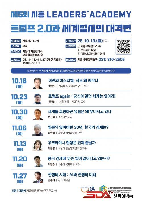 [½Åµ¿¾Æ¹æ¼Û ½ÃÈï½Ã=À̽ŵ¿±âÀÚ] ½ÃÈï½Ã´Â ¼­¿ï´ëÇб³ º»ºÎ Á÷¼Ó ¿¬±¸±â°üÀÎ ÅëÀÏÆòÈ­¿¬±¸¿ø°ú ÇÔ²² 'Á¦5ȸ ½ÃÈ︮´õ½º¾ÆÄ«µ¥¹Ì'¸¦ 10¿ù 16ÀÏ¿¡ °³°­ÇÑ´Ù. À̹ø ¾ÆÄ«µ¥¹Ì´Â 'Æ®·³ÇÁ 2.0°ú ¼¼°èÁú¼­ÀÇ ´ë°Ýº¯'À» ÁÖÁ¦·Î ±Þº¯ÇÏ´Â ±¹Á¦ Á¤¼¼¿Í ¼¼°è Áú¼­ÀÇ È帧¿¡ ´ëÇÑ ½Ã¹ÎµéÀÇ Æø³ÐÀº ÀÌÇØ¸¦ µ½°íÀÚ ¸¶·ÃµÆ´Ù.