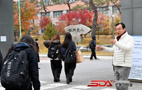 ÀÌ ½ÃÀåÀº Ãß¿î ³¯¾¾ ¼Ó¿¡¼µµ ½ÃÇèÀå ¾ÕÀ» ÁöŰ´Â Çкθð¿Í ±³Á÷¿øµé¿¡°Ô °¨»ç Àλ縦 ÀüÇϸç, ±³¹®À» Åë°úÇÏ´Â ¼öÇè»ýµé¿¡°Ô ¡°±×µ¿¾È È기 ¶¡ÀÇ °á½ÇÀÌ ºûÀ» ¹ßÇÏ´Â ³¯¡±À̶ó¸ç ¡°Çϳ²½Ã´Â ¿©·¯ºÐµéÀÌ ¿À·ÔÀÌ ½ÃÇè¿¡ ÁýÁßÇÒ ¼ö ÀÖµµ·Ï ³¡±îÁö ÇÔ²² Çϰڴ١±°í °Ý·ÁÀÇ ¸»À» °Ç³Þ´Ù.