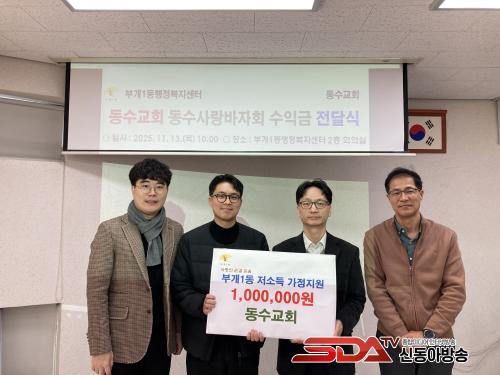 ºÎ°³1µ¿, µ¿¼ö±³È¸·ÎºÎÅÍ ¹ÙÀÚȸ ¼öÀÍ±Ý 100¸¸¿ø ±âŹ ¹Þ¾Æ