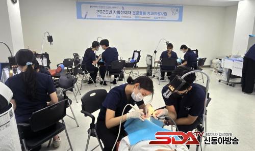 Áø·á¿¡´Â °æÈñ±âµ¶Ä¡°úºÀ»ç´Ü(CDSA) ¼Ò¼Ó ºÀ»ç´Ü¿ø 60¿© ¸íÀÌ Âü¿©ÇßÀ¸¸ç, °æÈñ´ëÄ¡°úº´¿ø Ãâ½Å µ¿¹® ÀÇ·áÁøµµ ÇÔ²²Çß´Ù. À̳¯ ¾à 50¸íÀÇ ÀÚȰÂü¿©ÀÚ°¡ ±¸°°ËÁø, ½ºÄÉÀϸµ, Ä¡¾Æ X-ray ÃÔ¿µ, ºÒ¼ÒµµÆ÷ µî ¹«·á Ä¡°ú Áø·á¸¦ ¹ÞÀ¸¸ç °Ç°ÇÑ ¹Ì¼Ò¿Í ÀڽۨÀ» µÇã´Â ½Ã°£À» °¡Á³´Ù.