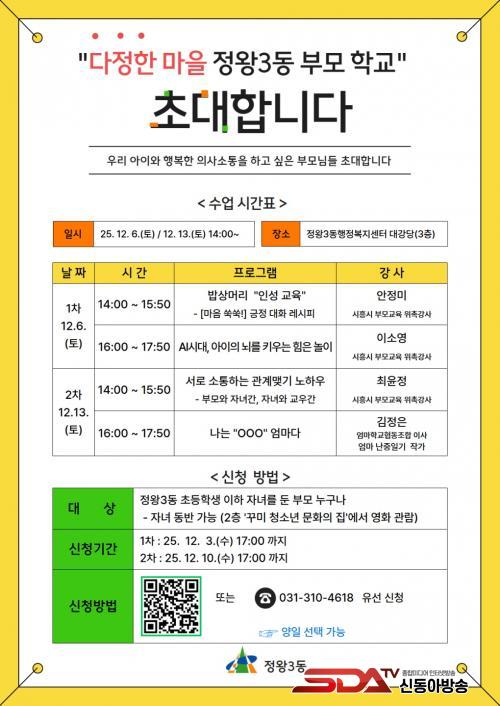 ±³À° ´ë»óÀº ÃʵîÇлý ÀÌÇÏ Àڳฦ µÐ ºÎ¸ðÀ̸ç, °ÀÇ´Â Á¤¿Õ3µ¿ ÇàÁ¤º¹Áö¼¾ÅÍ ´ë°´ç(3Ãþ)¿¡¼ ÁøÇàµÈ´Ù. ±³À° ½Ã°£ µ¿¾È ÀÚ³à´Â °°Àº °Ç¹° 2Ãþ ¡®²Ù¹Ì û¼Ò³â ¹®ÈÀÇ Áý¡¯¿¡¼ ¸¶·ÃµÈ ¿µÈ °ü¶÷ ÇÁ·Î±×·¥¿¡ Âü¿©ÇÒ ¼ö ÀÖ¾î ºÎ¸ðµéÀÌ ¾È½ÉÇÏ°í ±³À°¿¡ ÁýÁßÇÒ ¼ö ÀÖµµ·Ï Çß´Ù.
