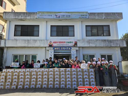 ȸ¿øµéÀº »çÈê µ¿¾È ¹èÃß 1500Æ÷±â¸¦ ¼ÕÁúÇÏ°í °¢Á¾ ä¼Ò·Î ¾ç³äÀ» ÁغñÇØ 12§¸ ºÐ·®ÀÇ ±èÀå±èÄ¡ 150»óÀÚ¸¦ ¸¸µé¾ú´Ù. ¿Ï¼ºµÈ ±èÄ¡´Â ±èÀåÇϱ⠾î·Á¿î Àú¼Òµæ Ȧ¸ö³ëÀΰú ûÀå³â 1ÀÎ °¡±¸, Àå¾ÖÀÎ °¡±¸, º¹Áö½Ã¼³ µî¿¡ Á÷Á¢ Àü´ÞÇßÀ¸¸ç Àü´Þ °úÁ¤¿¡¼ ¾ÈºÎµµ ÇÔ²² »ìÆñ´Ù.