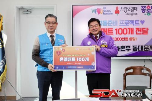 ¹°Ç° Àü´Þ½Ä¿¡´Â ÀÌÇÊÇü µ¿´ë¹®±¸Ã»Àå°ú µµÀÎÈ£ ±¹Á¦À§·¯ºêÀ¯¿îµ¿º»ºÎ ÁöºÎÀåÀ» ºñ·ÔÇØ ȸ¿øµéÀÌ Âü¼®Çß´Ù. µµ ÁöºÎÀåÀº ¡°Áö¿ª °÷°÷¿¡¼ À̾îÁö´Â ³ª´®ÀÌ Å« ÈûÀÌ µÈ´Ù¡±¸ç ¡°À§·¯ºêÀ¯°¡ µµ¿òÀÌ ÇÊ¿äÇÑ ÀÌ¿ô¿¡°Ô Èñ¸ÁÀ» °Ç³×´Â ÀÛÀº ´Ù¸®°¡ µÇ±æ ¹Ù¶õ´Ù¡±°í ÀüÇß´Ù.