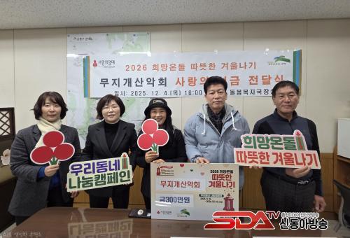 ¹«Áö°³ »ê¾Çȸ´Â À̳¯ ¼º±Ý 3¹é¸¸ ¿øÀ» Àü´ÞÇß°í, ¼º±ÝÀº 2026 ³ª´®³×Æ®¿öÅ© »ç¾÷À» ÅëÇØ °ü³» Àú¼Òµæ °¡±¸¿¡ Àü´ÞµÉ ¿¹Á¤ÀÌ´Ù. »ê¾Çȸ´Â ¸Å³â À̸¾¶§ µû¶æÇÑ °Ü¿ï³ª±â ±âºÎ »ç¾÷¿¡ Âü¿©Çϰí ÀÖ´Ù.