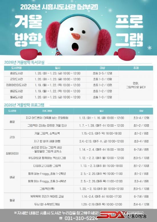 [½Åµ¿¾Æ¹æ¼Û ½ÃÈï½Ã=À̽ŵ¿±âÀÚ] ½ÃÈï½ÃÁß¾Óµµ¼­°ü µî 5°³ ³²ºÎ±Ç °ø°øµµ¼­°ü(Áß¾Ó¤ý±ºÀÚ¤ýÁ¤¿Õ¾î¸°À̤ý¹è°ð¤ý¿ù°ù)Àº °Ü¿ï¹æÇÐÀ» ¸ÂÀÌÇÑ ¾î¸°À̵éÀ» À§ÇØ ¡®2026³â °Ü¿ïµ¶¼­±³½Ç ¹× °Ü¿ï¹æÇÐ ÇÁ·Î±×·¥¡¯À» ¿À´Â 2026³â 1¿ù 7ÀϺÎÅÍ 2¿ù 26ÀϱîÁö ¿î¿µÇÑ´Ù.