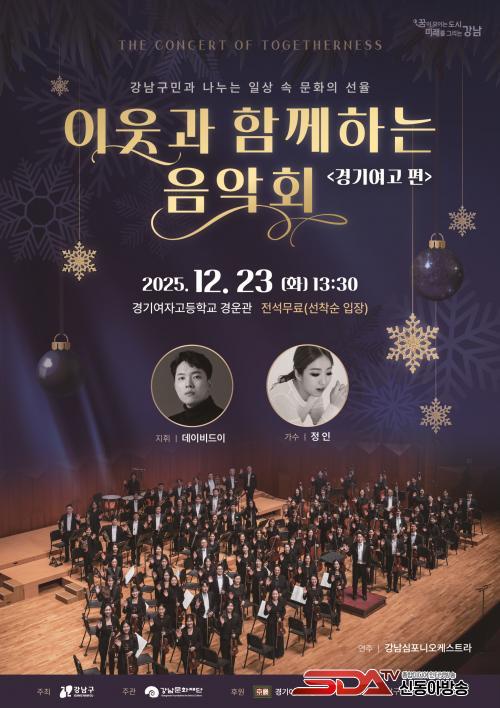 ¡®ÀÌ¿ô°ú ÇÔ²²ÇÏ´Â À½¾Çȸ¡¯´Â °­³²±¸ ´ëÇ¥ ¿¹¼ú´ÜüÀÎ °­³²½ÉÆ÷´Ï¿ÀÄɽºÆ®¶ó¸¦ Áß½ÉÀ¸·Î, ¹Î°£ ¹®È­°ø°£°ú Çù·ÂÇØ ¿­¸®´Â °­³²±¸ÀÇ ´ëÇ¥ ¹®È­¿¹¼ú ÇÁ·Î±×·¥ÀÌ´Ù. 2023³âºÎÅÍ ¹Î°ü ¹®È­±³·ùÀÇ ÀÏȯÀ¸·Î Áö¿ª ´Üü¿Í ÇÔ²² ÇÕµ¿ ¹«´ë¸¦ ¸¶·ÃÇØ¿À°í ÀÖÀ¸¸ç, À̸¦ ÅëÇØ ÁֹΠ¸ðµÎ°¡ ¿¹¼úÀ» ÇâÀ¯ÇÒ ¼ö ÀÖ´Â ±âȸ¸¦ Á¦°øÇϰí ÀÖ´Ù.