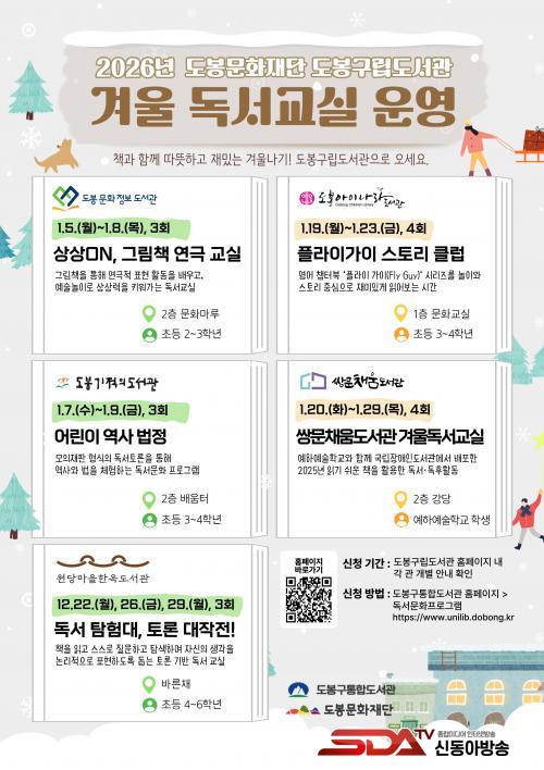 ¿ø´ç¸¶À»ÇÑ¿Áµµ¼°ü¿¡¼´Â 12¿ù 22~29ÀÏ ¡®µ¶¼ ŽÇè´ë, Åä·Ð ´ëÀÛÀü!¡¯À», µµºÀ¹®ÈÁ¤º¸µµ¼°ü¿¡¼´Â 1¿ù 5~8ÀÏ ¡®»ó»óON, ±×¸²Ã¥ ¿¬±Ø ±³½Ç¡¯À», µµºÀ±âÀûÀǵµ¼°ü¿¡¼´Â 1¿ù 7~9ÀÏ ¡®¾î¸°ÀÌ ¿ª»ç ¹ýÁ¤¡¯ ÇÁ·Î±×·¥À» ¿î¿µÇÑ´Ù.