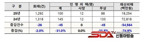 ¡Û ÀÎõ¼Ò¹æº»ºÎ¿¡ µû¸£¸é, 25³â ÀÎõ ³» ´ëÇü ÈÀç·Î ÀÎÇÑ '¼Ò¹æ ´ëÀÀ´Ü°è' ¹ß·É Ƚ¼ö´Â 3ȸ·Î ÀÌ´Â Àü³â ´ëºñ 75% °¨¼ÒÇÑ °ÍÀ¸·Î ³ªÅ¸³µ´Ù. ÈÀç°Ç¼ö´Â 1,292°ÇÀ¸·Î Àü³â ´ëºñ 2.0%°¡ °¨¼ÒÇß°í ÀθíÇÇÇØ(100¸í)µµ Àü³â ´ëºñ 31.0%°¡ °¨¼ÒÇß´Ù. Àç»êÇÇÇØ´Â 182¾ï¿øÀ¸·Î Àü³â´ëºñ 74.9%³ª °¨¼ÒÇß´Ù. ÀÌ´Â ÈÀç ¿¹¹æ ´ëÃ¥ºÎÅÍ ½Ã¹Î ±³À°, ÇöÀå ´ëÀÀ ½Ã½ºÅÛ °³¼±±îÁö À̾îÁö´Â ÃÎÃÎÇÑ ¾ÈÀü¸ÁÀÌ ÇöÀå¿¡¼ ½ÇÁúÀûÀÎ È¿°ú¸¦ ¹ßÈÖÇϰí ÀÖ´Â °ÍÀ¸·Î Ç®À̵ȴÙ.