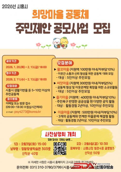 °ø¸ð»ç¾÷ ¹× »çÀü¼³¸íȸ¿Í °ü·ÃÇÑ ÀÚ¼¼ÇÑ »çÇ×Àº ÁÖ¹ÎÀÚÄ¡°ú ¸¶À»¸¸µé±âÆÀ(031-310-3780)À¸·Î ¹®ÀÇÇϰųª ½ÃÈï½Ãû ´©¸®ÁýÀÇ °í½Ã°ø°í °Ô½ÃÆÇÀ» ÅëÇØ È®ÀÎÇÒ ¼ö ÀÖ´Ù. ¼³¸íȸ Âü¿©¸¦ ¿øÇÏ´Â ½Ã¹ÎÀº ÀüÈ ¹× ¸µÅ©(https://naver.me/IxKgftw2)¸¦ ÅëÇØ ½ÅûÇÒ ¼ö ÀÖ´Ù.