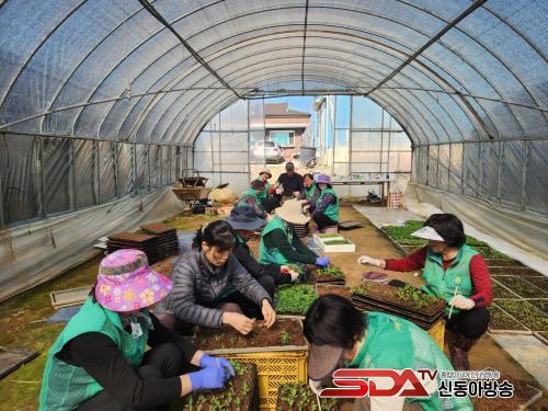 À̹ø ÀÛ¾÷¿¡´Â ½ÅÆò¸é »õ¸¶À»ÁöµµÀÚ¿Í °¢ ¸¶À» ºÎ³àȸÀå µî ÃÑ 42¸íÀÌ Âü¿©ÇØ, ±×µ¿¾È ³ëÁö¿¡ ÆÄÁ¾ÇØ Á¤¼º²¯ ±æ·¯¿Â ²É¾¾¸¦ ¸ðÁ¾ Æ÷Æ®·Î ¿Å°Ü ½É´Â ÀÛ¾÷À» ÇÔ²² ÁøÇàÇß´Ù.
