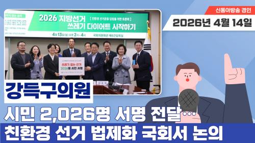 ´õºÒ¾î¹ÎÁÖ´ç °­µæ±¸ ÀÇ¿ø(°æ±â ¾È¾ç¸¸¾È, ÃÖ°íÀ§¿ø)Àº 13ÀÏ ¿ÀÈÄ 2½Ã ±¹È¸ÀÇ¿øÈ¸°ü¿¡¼­ '2026 Áö¹æ¼±°Å, ¾²·¹±â ´ÙÀÌ¾îÆ® ½ÃÀÛÇϱâ: ģȯ°æ ¼±°Å¿îµ¿ ÀÔ¹ýÀ» À§ÇÑ Åä·Ðȸ'¸¦ °³ÃÖÇß½À´Ï´Ù. ÀÇ¿ø 17¸íÀÌ °øµ¿ ÁÖÃÖÇÏ°í ¾²·¹±â¼¾ÅÍ, ¹Ì·¡´çÀÌ ÁÖ°üÇÑ À̹ø Çà»ç¿¡¼­´Â ÀüÀÚ°øº¸¹° µµÀÔÀ» Ã˱¸ÇÏ´Â ½Ã¹Î 2,026¸íÀÇ ¼­¸í Àü´Þ½Äµµ ÇÔ²² ÁøÇàµÆ½À´Ï´Ù.