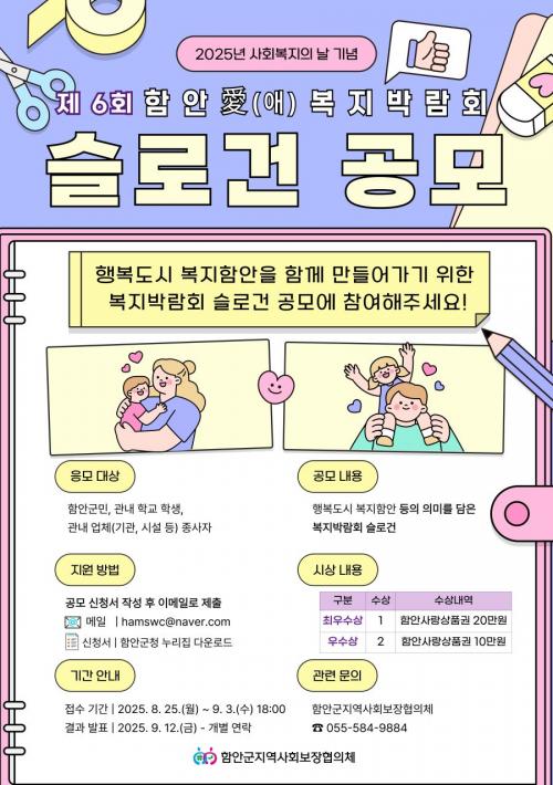 [½Åµ¿¾Æ¹æ¼Û °æ³²ÇÔ¾È=À̽ŵ¿±âÀÚ] ÇԾȱº°ú ÇԾȱº Áö¿ª»çȸº¸ÀåÇùÀÇü´Â ¿À´Â 10¿ù 30ÀÏ¿¡ ¿­¸®´Â ¡®Á¦6ȸ ÇԾȾÖ(äñ)º¹Áö¹Ú¶÷ȸ¡¯¸¦ ¾ÕµÎ°í ±º¹Î°ú ÇÔ²² ¸¸µå´Â ½½·Î°Ç °ø¸ð¸¦ 8¿ù 25ÀϺÎÅÍ 9¿ù 3ÀϱîÁö ÁøÇàÇÑ´Ù. À̹ø °ø¸ð´Â ¡®Çູµµ½Ã º¹ÁöÇԾȡ¯ÀÇ °¡Ä¡¿Í ÀÇ¡¦