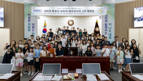[½Åµ¿¾Æ¹æ¼Û=ÀÌÀçö±âÀÚ] È­¼ºÆ¯·Ê½Ã(½ÃÀå Á¤¸í±Ù)°¡ Áö³­´Þ 30ÀÏ È­¼º½ÃÀÇȸ º»È¸ÀÇÀå¿¡¼­ Á¦8´ë ¾î¸°ÀÌ‧ û¼Ò³âÀÇȸ 2Â÷ Á¤·Êȸ¸¦ °³ÃÖÇß´Ù. À̳¯ Á¤·Êȸ´Â ¾î¸°ÀÌÀÇÀå°ú û¼Ò³âÀÇÀåÀÌ Á÷Á¢ ÁÖÀçÇßÀ¸¸ç, ÀÇÀ塤ºÎÀÇÀåÀ¸·Î ±¸¼ºµÈ ÀÇȸ¿î¿µÀ§¿øÈ¸¸¦ ºñ·ÔÇØ ¾î¡¦