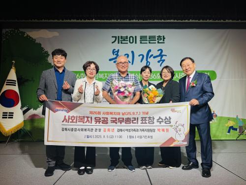 [½Åµ¿¾Æ¹æ¼Û °æ³²±èÇØ=³²±Ã¿µ±â±âÀÚ] ±èÇØ½Ã´Â ½Ãû ¿©¼º°¡Á·°ú ¹ÚÇý¿ø °¡Á·Áö¿øÆÀÀå°ú ±èÇØ½ÃÁ¾ÇÕ»çȸº¹Áö°ü ±èÈñ³â °üÀåÀÌ Á¦26ȸ »çȸº¹ÁöÀÇ ³¯À» ¸Â¾Æ »çȸº¹Áö ¹ßÀü¿¡ ±â¿©ÇÑ °ø·Î·Î ±¹¹«ÃѸ® ǥâÀ» ¼ö»óÇß´Ù°í 5ÀÏ ¹àÇû´Ù. »çȸº¹ÁöÀÇ ³¯(9¿ù 7ÀÏ)Àº »çȸº¹Áö¡¦