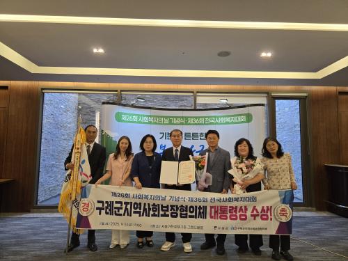 [½Åµ¿¾Æ¹æ¼Û ±¸·Ê=À±¼ºÁÖ ±âÀÚ] Àü³² ±¸·Ê±ºÀº Áö³­ 5ÀÏ ¡®±âº»ÀÌ Æ°Æ°ÇÑ º¹Áö °­±¹¡¯À» ÁÖÁ¦·Î ¿­¸° Á¦26ȸ »çȸº¹ÁöÀÇ ³¯ ±â³ä½Ä¿¡¼­ ±¸·Ê±ºÁö¿ª»çȸº¸Àå´ëÇ¥ÇùÀÇü(°ø°øÀ§¿øÀå ±è¼øÈ£, ¹Î°£À§¿øÀå ÀÓÀç½Å)°¡ Áö¿ª»çȸ º¹Áö ÁõÁø¿¡ ±â¿©ÇÑ °ø·Î¸¦ ÀÎÁ¤¹Þ¾Æ ´ëÅë·É Ç¥¡¦