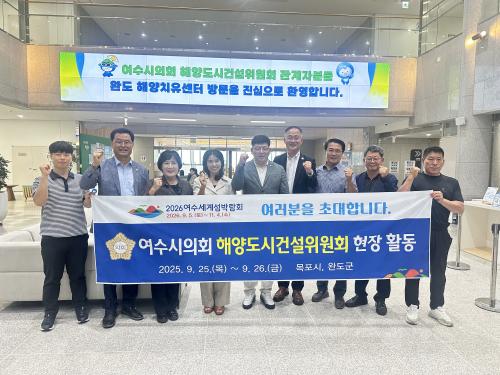 [½Åµ¿¾Æ¹æ¼Û ¿©¼ö=±è±â³² ±âÀÚ] ¿©¼ö½ÃÀÇȸ ÇØ¾çµµ½Ã°Ç¼³À§¿øÈ¸(À§¿øÀå ±¸¹ÎÈ£)´Â ÇØ¾ç¡¤¼ö»ê¾÷ °æÀï·Â °­È­¿Í µµ½ÃÀç»ý, Ä¡À¯¡¤°ü±¤ ½Å»ê¾÷ ¹ßÀüÀ» À§ÇÑ Á¤Ã¥ º¥Ä¡¸¶Å·À» À§ÇØ 9¿ù 25ÀϺÎÅÍ 26ÀϱîÁö 1¹Ú 2Àϰ£ ÀÇȸ»ç¹«±¹°ú ½ÃÁ¤ºÎ °ü°èÀÚ µî ÃÑ 16¸íÀÌ ¸ñÆ÷½Ã¿Í ¿Ïµµ¡¦