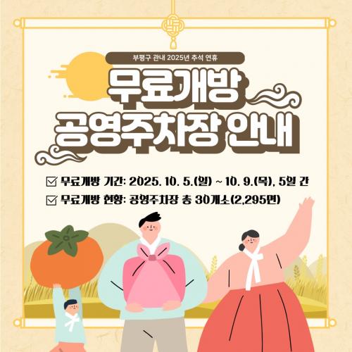 ºÎÆò±¸½Ã¼³°ü¸®°ø´Ü, Ãß¼® ¿¬ÈÞ °ø¿µÁÖÂ÷Àå 30°³¼Ò ¹«·á °³¹æ