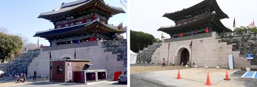 [½Åµ¿¾Æ¹æ¼Û °æ³²ÁøÁÖ=³²±Ã¿µ±â±âÀÚ] ÁøÁֽô 1ÀÏ ÁøÁÖ¼º °øºÏ¹® ¾ÕÀ» °¡·Î¸·¾Æ ½Ã°¢ÀûÀ¸·Î Á¶È­·ÓÁö ¸øÇß´ø ¸ÅÇ¥¼Ò¸¦ ±âÁ¸ °ü±¤¾È³»¼Ò ¿·À¸·Î ÀÌÀü ¼³Ä¡ÇÏ¿© ÁøÁÖ¼º ¼ºº®°ú °øºÏ¹® °æ°üÀ» ȸº¹Çß´Ù°í ¹àÇû´Ù. ÁøÁֽô 2025³â 4¿ù Ã˼®¹® ¸ÅÇ¥¼Ò ö°Å¸¦ ÅëÇØ ¼ºº® ¡¦