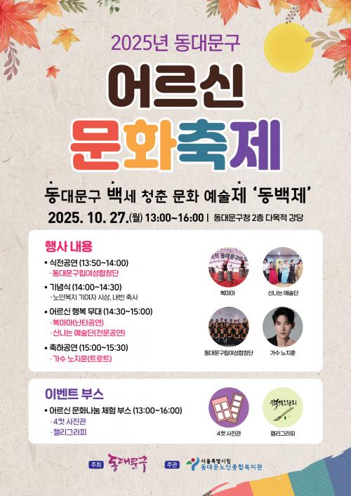 [½Åµ¿¾Æ¹æ¼Û µ¿´ë¹®±¸=À̽ŵ¿±âÀÚ] ¼­¿ï µ¿´ë¹®±¸´Â ¿À´Â 27ÀÏ ±¸Ã» 2Ãþ ´Ù¸ñÀû°­´ç¿¡¼­ ¡¸2025³â µ¿´ë¹®±¸ ¾î¸£½Å ¹®È­ÃàÁ¦ ¡®µ¿¹éÁ¦¡¯¡¹¸¦ °³ÃÖÇÑ´Ù°í ¹àÇû´Ù. À̹ø ÃàÁ¦´Â Áö¿ª ¾î¸£½Åµé¿¡°Ô ´Ù¾çÇÑ °ø¿¬°ú ¹®È­ üÇèÀÇ ±âȸ¸¦ Á¦°øÇϱâ À§ÇØ ¸¶·ÃµÈ ÀÚ¸®·Î, µ¿´ë¡¦