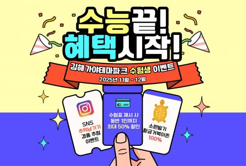 [½Åµ¿¾Æ¹æ¼Û °æ³²±èÇØ=³²±Ã¿µ±â±âÀÚ] ±èÇØ¹®È­°ü±¤Àç´Ü ±èÇØ°¡¾ßÅ׸¶ÆÄÅ©°¡ 2026Çг⵵ ¼öÇдɷ½ÃÇè(ÀÌÇÏ ¼ö´É)À» ¾ÕµÎ°í ÀÌ´Þ 13ÀϺÎÅÍ 12¿ù±îÁö ¼öÇè»ý ÀÀ¿ø À̺¥Æ® `°í»ý ³¡¿¡ äÅÀÌ ¿Â´Ù`¸¦ ÁøÇàÇÑ´Ù. À̹ø Çà»ç¿¡´Â ±×µ¿¾È °í»ýÇÑ ¼öÇè»ý°ú °¡Á·µéÀ» À§ÇØ ´Ù¾çÇÑ¡¦