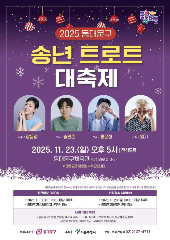 [½Åµ¿¾Æ¹æ¼Û µ¿´ë¹®±¸=À̽ŵ¿±âÀÚ] ¼­¿ï µ¿´ë¹®±¸´Â ¿À´Â 23ÀÏ ¿ÀÈÄ 5½Ã µ¿´ë¹®±¸Ã¼À°°ü¿¡¼­ ¡®2025 µ¿´ë¹®±¸ ¼Û³â Æ®·ÎÆ® ´ëÃàÁ¦¡¯¸¦ °³ÃÖÇÑ´Ù°í ¹àÇû´Ù. À̹ø Çà»ç´Â Áö³­ÇØ¿¡ ÀÌ¾î ¿ÃÇØ·Î 2ȸ° ¿­¸®´Â ¿¬¸» °ø¿¬À¸·Î, ÇÑ ÇØ¸¦ ¸¶¹«¸®Çϸç Áֹε鿡°Ô Èï°ú °¨µ¿À» Àü¡¦