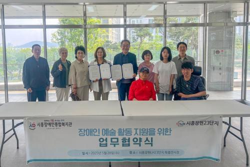 [½Åµ¿¾Æ¹æ¼Û ½ÃÈï½Ã=À̽ŵ¿±âÀÚ] ½ÃÈïÀå¾ÖÀÎÁ¾ÇÕº¹Áö°üÀº Àå¾ÖÀκ¹ÁöÀÏÀÚ¸® »ç¾÷¿¡ Âü¿©ÇÏ¸ç ¹®È­¿¹¼ú Ȱµ¿À» À̾î¿À´ø ÁßÁõÀå¾ÖÀÎ 3¸íÀÌ ¿¤¿¡½º¸ÞÅ»(ÁÖ)¿¡ ¹Ì¼úÀÛ°¡·Î ä¿ëµÇ´Â ¼º°ú¸¦ °Åµ×´Ù. À̹ø¿¡ ä¿ëµÈ À̵éÀº ¿¤¿¡½º¸ÞÅ»(ÁÖ) ¼Ò¼Ó °è¾àÁ÷ ±×¸²ÀÛ°¡·Î ±Ù¹«Çϸ硦
