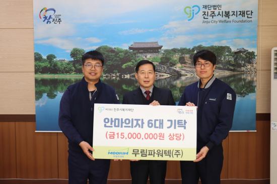 [½Åµ¿¾Æ¹æ¼Û °æ³²ÁøÁÖ=³²±Ã¿µ±â±âÀÚ] ¹«¸²ÆÄ¿öÅØ¢ß´Â 3ÀÏ, »ç¾÷Àå ÁÖº¯ Áö¿ª ÁÖ¹ÎÀÇ º¹Áö Çâ»ó°ú °Ç°­ ÁõÁøÀ» À§ÇØ ¾È¸¶ÀÇÀÚ 6´ë(ȯ°¡¾× 1500¸¸ ¿©¿ø »ó´ç)¸¦ ÁøÁֽú¹ÁöÀç´Ü¿¡ ±âŹÇß´Ù. À̹ø ±âŹÀº ¹«¸²ÆÄ¿öÅØ¢ßÀÌ Áö¿ª»çȸ¿ÍÀÇ »ó»ýÀ» ½ÇõÇϰí ESG °æ¿µÀ» °­È­ÇÏ¡¦