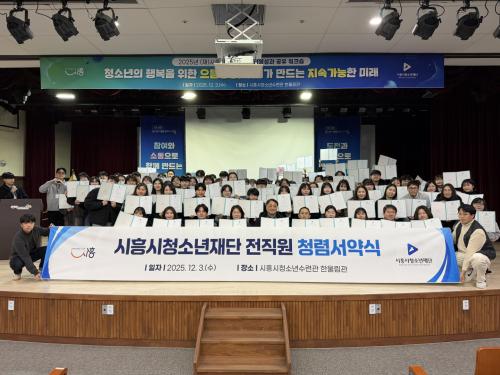 [½Åµ¿¾Æ¹æ¼Û ½ÃÈï½Ã=À̽ŵ¿±âÀÚ] ½ÃÈï½Ãû¼Ò³âÀç´ÜÀº Áö³­ 12¿ù 3ÀÏ Àü Á÷¿øÀÌ Âü¼®ÇÑ °¡¿îµ¥ ¡®Ã»·Å¼­¾à½Ä¡¯À» °³ÃÖÇϰí Åõ¸íÇϰí À±¸®ÀûÀÎ Á¶Á÷ ¿î¿µÀ» À§ÇÑ È®°íÇÑ ÀÇÁö¸¦ ´ÙÁ³´Ù. Àç´Ü û·Å°¨»çÆÀ ÁÖ°üÀ¸·Î ÁøÇàµÈ ¼­¾à½Ä¿¡ Âü¼®ÇÑ Á÷¿øµéÀº ¼­¾à¼­¿¡ Á÷Á¢ ¼­¸í¡¦