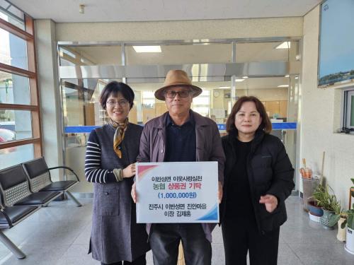 [½Åµ¿¾Æ¹æ¼Û °æ³²ÁøÁÖ=³²±Ã¿µ±â±âÀÚ] ÁøÁֽà À̹ݼº¸é Áø¾È¸¶À» ±èÁ¦È« ÀÌÀåÀº Áö³­ 17ÀÏ À̹ݼº¸é»ç¹«¼Ò¸¦ ¹æ¹®ÇÏ¿© ÀÌ¿ô»ç¶û ½ÇõÀÇ ÀÏȯÀ¸·Î 100¸¸ ¿ø »ó´çÀÇ »óǰ±ÇÀ» ±âŹÇß´Ù. ±âŹµÈ »óǰ±ÇÀº °ü³» Àú¼Òµæ º¹Áö»ç°¢Áö´ë 10°¡±¸¿¡ ¼ÒÁßÈ÷ Àü´ÞµÉ ¿¹Á¤ÀÌ´Ù. ±èÁ¦¡¦