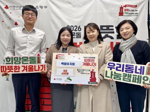 [½Åµ¿¾Æ¹æ¼Û ÀºÆò±¸=À̽ŵ¿±âÀÚ] ¼­¿ï ÀºÆò±¸ ¿ªÃ̵¿Àº Áö³­ 19ÀÏ ¹éÇÕÀ¯Ä¡¿øÀ¸·ÎºÎÅÍ ¡®2026. Èñ¸Á¿Âµ¹ µû¶æÇÑ °Ü¿ï³ª±â¡¯ ¼º±Ý 40¸¸ ¿øÀ» Àü´Þ¹Þ¾Ò´Ù°í ¹àÇû´Ù. À̹ø ¼º±ÝÀº ¹éÇÕÀ¯Ä¡¿ø ¿ø»ýµé°ú ±³Á÷¿øµéÀÌ ÀÚ¹ßÀûÀ¸·Î Âü¿©ÇØ ¸ðÀº ±âºÎ±ÝÀ¸·Î ¸¶·ÃµÆÀ¸¸ç, °ü³» Ã롦
