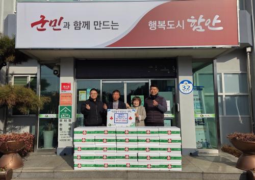 [½Åµ¿¾Æ¹æ¼Û °æ³²ÇÔ¾È=À̽ŵ¿±âÀÚ] ÇԾȱº Ä¥ºÏ¸éÀº Áö³­ 29ÀÏ Áö¿ª ³» ¾çµ·¾÷ü 3°÷(µ¿¹æ³óÀå Â÷»ó½Ä ´ëÇ¥, È­Áø³óÀå ±è¸¸·¡ ´ëÇ¥, ÇÁ·ÎÆÊ ³ëÇö¼® ´ëÇ¥)ÀÌ ¿¬¸»À» ¸Â¾Æ µÅÁö°í±â 200kgÀ» °ü³» °æ·Î´ç 24°÷¿¡ ±âŹÇϸç Áö¿ª ¾î¸£½Åµé¿¡ ¿ÂÁ¤¸¦ ÀüÇß´Ù°í ¹àÇû´Ù. ÀÌ¡¦