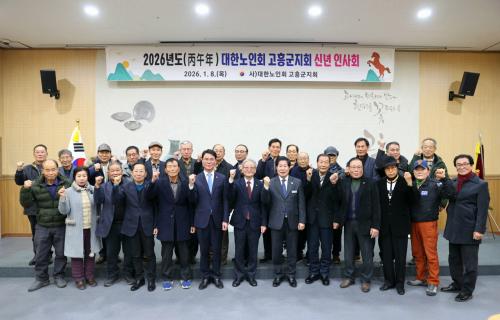 [½Åµ¿¾Æ¹æ¼Û °íÈï=¹Ú±¤¿Á±âÀÚ] °íÈﱺ(±º¼ö °ø¿µ¹Î)Àº 8ÀÏ °íÈïºÐû¹®È­¹Ú¹°°ü¿¡¼­ ´ëÇѳëÀÎȸ °íÈﱺÁöȸ(ÁöȸÀå Á¤º´³²) ÁÖ°üÀ¸·Î ¡®2026³â ½Å³â Àλçȸ¡¯¸¦ °³ÃÖÇß´Ù. À̹ø ½Å³â Àλçȸ´Â Áö³­ÇØ 12¿ù »õ·Ó°Ô ¼±ÃâµÈ Á¤º´³² ÁöȸÀåÀÌ ÃëÀÓ ÈÄ Ã³À½ ¸Â´Â °ø½Ä Çࡦ