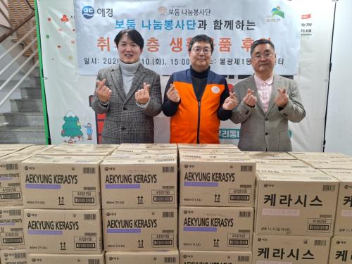 [½Åµ¿¾Æ¹æ¼Û ÀºÆò±¸=À̽ŵ¿±âÀÚ] ¼­¿ï ÀºÆò±¸ ºÒ±¤1µ¿Àº Áö³­ 10ÀÏ º¸µÒ³ª´®ºÀ»ç´ÜÀ¸·ÎºÎÅÍ 5¹é¸¸ ¿ø »ó´çÀÇ »ýȰ¿ëǰÀ» ±âºÎ¹Þ¾Ò´Ù°í ¹àÇû´Ù. À̹ø Àü´Þ½ÄÀº Áö¿ª ³» Ãë¾à°èÃþÀÇ »ýȰ ¾ÈÁ¤À» µ½°í, ÀÏ»ó¿¡ ²À ÇÊ¿äÇÑ »ýÇÊǰÀ» Áö¿øÇϱâ À§ÇØ ¸¶·ÃµÆ´Ù. ±âºÎµÈ ¹°Ç°Àº¡¦
