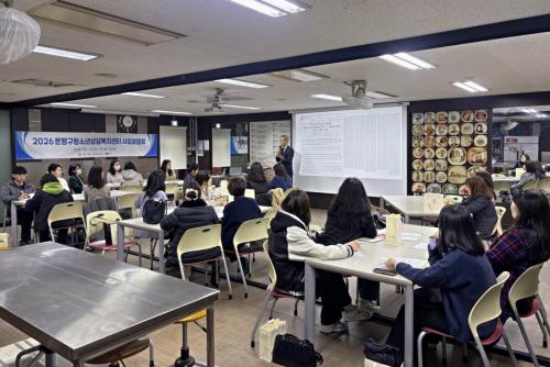 [½Åµ¿¾Æ¹æ¼Û ÀºÆò±¸=À̽ŵ¿±âÀÚ] ¼­¿ï ÀºÆò±¸´Â Áö³­ 3¿ù 18ÀÏ ÀºÆò±¸Ã»¼Ò³â»ó´ãº¹Áö¼¾ÅÍ¿¡¼­ °ü³» ÃÊ¡¤Áß¡¤°íµîÇб³ ±³»ç¸¦ ´ë»óÀ¸·Î ¡®2026³â »ç¾÷¼³¸íȸ¡¯¸¦ °³ÃÖÇß´Ù°í ¹àÇû´Ù. À̹ø ¼³¸íȸ¿¡´Â 41°³±³ ±³»ç 53¸íÀÌ Âü¼®ÇßÀ¸¸ç, Çб³ ÇöÀå¿¡¼­ ÃßÁøµÇ´Â û¼Ò³â »ó¡¦