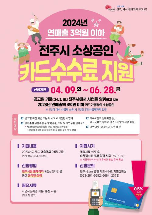 Èñ¸ÁÀÚ´Â ½Åû ±â°£ ³»¿¡ ÀüÁֽà ´©¸®Áý ÅëÇÕ½ÅûÁö¿ø¿¡¼­ »ç¾÷ÀÚµî·ÏÁõ »çº»°ú ´ëÇ¥ÀÚ¸íÀÇ ÅëÀå »çº»À» ÷ºÎÇØ ¿Â¶óÀÎÀ¸·Î °£´ÜÈ÷ ½ÅûÇÒ ¼ö ÀÖ´Ù. ¼Ò»ó°øÀÎ Ä«µå¼ö¼ö·á Áö¿ø»ç¾÷¿¡ ´ëÇÑ ÀÚ¼¼ÇÑ »çÇ×Àº ÀüÁֽà ´©¸®Áý¿¡ °Ô½ÃµÈ °ø°í¹®À» Âü°íÇÏ¸é µÈ´Ù.