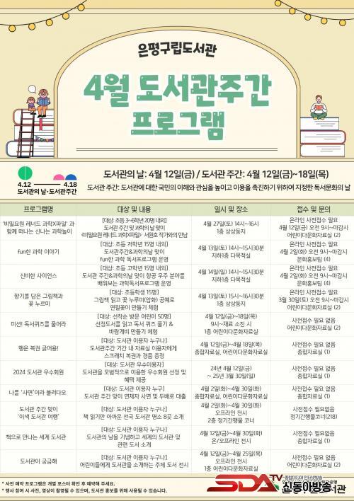 ÀºÆò±¸¸³µµ¼°ü °ü°èÀÚ´Â ¡°Á¦2ȸ µµ¼°üÀÇ ³¯°ú Á¦60ȸ µµ¼°ü ÁÖ°£À» ¸Â¾Æ ´Ù¾çÇÑ µ¶¼¹®ÈÇÁ·Î±×·¥ üÇè°ú À̺¥Æ®¸¦ ÁغñÇß´Ù¡±¸ç ¡°µû¶æÇÑ º½À» ¸Â¾Æ Áö¿ª ÁֹεéÀÌ ´Ù¾çÇÑ µ¶¼¹®È¸¦ Áñ±â¸ç µµ¼°ü°ú Ã¥¿¡ ÇÑÃþ ´õ °¡±î¿öÁö´Â °è±â°¡ µÇ±æ ¹Ù¶õ´Ù¡±°í ¸»Çß´Ù.