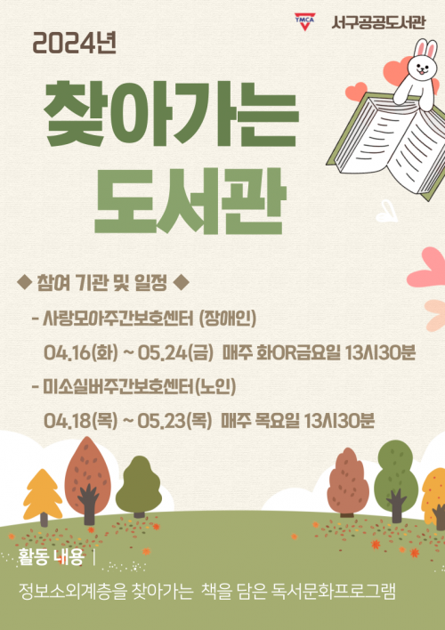 »ç¶û¸ð¾ÆÁÖ°£º¸È£¼¾ÅÍ Àå¾ÖÀÎ ´ë»óÀº ¡ãÃ¥À» ÅëÇÑ ±Û³îÀÌ ¸»³îÀÌ, ¡ã°¨Á¤À» Ç¥ÇöÇÏ´Â ¹æ¹ý, ¡ã¿ªÇÒ±ØÀ» ÅëÇÑ Æò»ý±³À° ±âȸ Á¦°ø°ú ´õºÒ¾î »çȸ ±¸¼º¿øÀ¸·Î½á ÀڽۨÀ» ³ôÀÌ´Â ±âȸ¸¦ Á¦°øÇÑ´Ù.