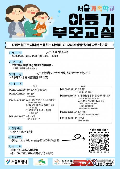 ¡®¾Æµ¿±â ºÎ¸ð±³½Ç¡¯Àº ¿À´Â 16Àϰú 18ÀÏ, ¿ÀÀü 10½ÃºÎÅÍ 12½Ã±îÁö ÀºÆò±¸ °¡Á·¼¾ÅÍ¿¡¼ ÁøÇàµÈ´Ù. ½ÅûÀº Æ÷½ºÅ͸¦ Âü°íÇØ ¿Â¶óÀÎ ¸µÅ©·Î Á¢¼ÓÇØ ÇϸéµÈ´Ù.