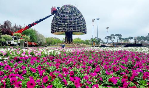 ÇÔÆò±ºÀº ¿¢½ºÆ÷°ø¿ø ÁÖÁ¦°ü ¾ÕÁö¸§ 10m, ³ôÀÌ 14m ±Ô¸ðÀÇ ²Þ³ª¹«, Èñ¸Á³ª¹« Á¶Çü¹°¿¡ ¿þÀ̺ê»çÇÇ´Ï¾Æ ÈºÐ 4õ º»À» ÅõÀÔ, ²Éž Á¶¼º ÀÛ¾÷À» ½Ç½ÃÇϰí ÀÖ´Ù.