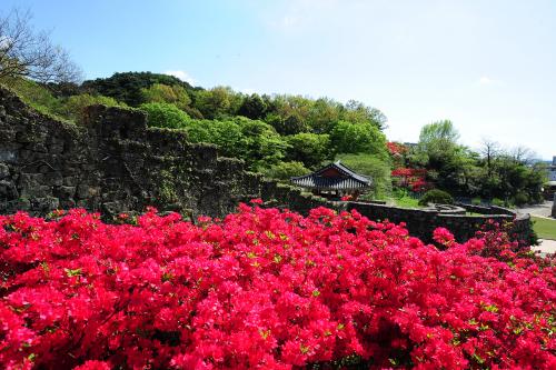 À¾¼º ³»ºÎ¿¡´Â º½ºñ¸¦ ¸Â°í ¿¬ÃÊ·Ï ¹°ÀÌ ¿À¸¥ ³ª¹µÀÙµéÀÌ ½Ì±×·´°í, ¼º°û ¹ÛÀ¸·Î´Â ÁøÈ«ºû öÂßÀÌ Àå°üÀ» ÀÌ·ç¸ç º½À» Áñ±â±â À§ÇØ °íâÀ» ã´Â °ü±¤°´¿¡°Ô ½Ã°¢Àû Áñ°Å¿òÀ» ¼±»çÇϰí ÀÖ´Ù.